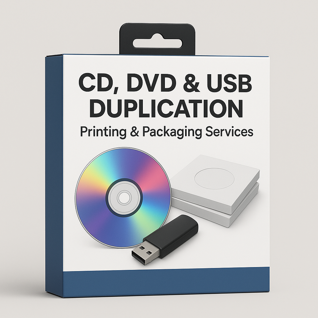 CD duplication, DVD duplication, USB duplication services, media printing and packaging, secure data duplication, bulk USB production, custom media packaging.